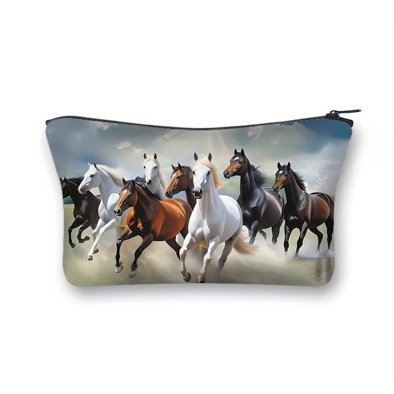 Apportez une touche de grâce et de noblesse à votre routine beauté avec cette trousse cosmétique "Terre des Loups". Fabriquée en polyester de haute qualité, elle présente des impressions réalistes et artistiques de chevaux capturés dans des paysages naturels somptueux. Que vous soyez en déplacement ou que vous organisiez votre coiffeuse, ce pochon polyvalent est l'accessoire indispensable pour ranger vos essentiels de maquillage, vos pinceaux ou même votre monnaie avec un style résolument élégant. Sa conception souple et légère en fait un compagnon de voyage pratique qui se glisse facilement dans n'importe quel sac.