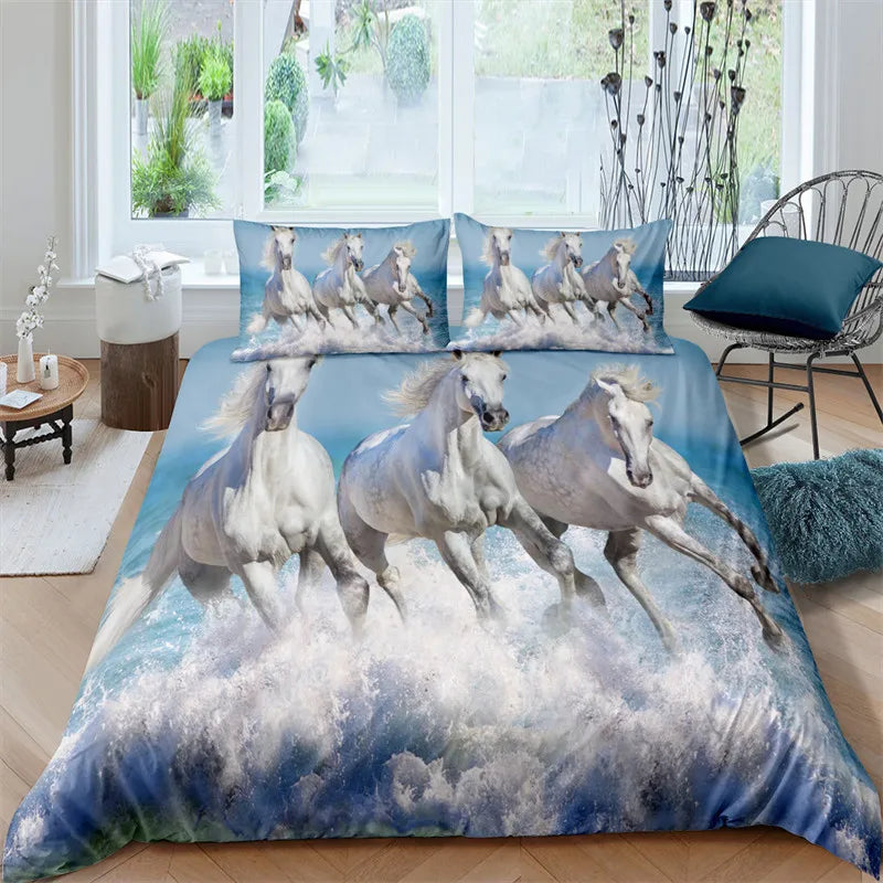 • Ensemble Complet 3 Pièces : Comprend une housse de couette et deux taies d'oreiller assorties pour un total look équestre.