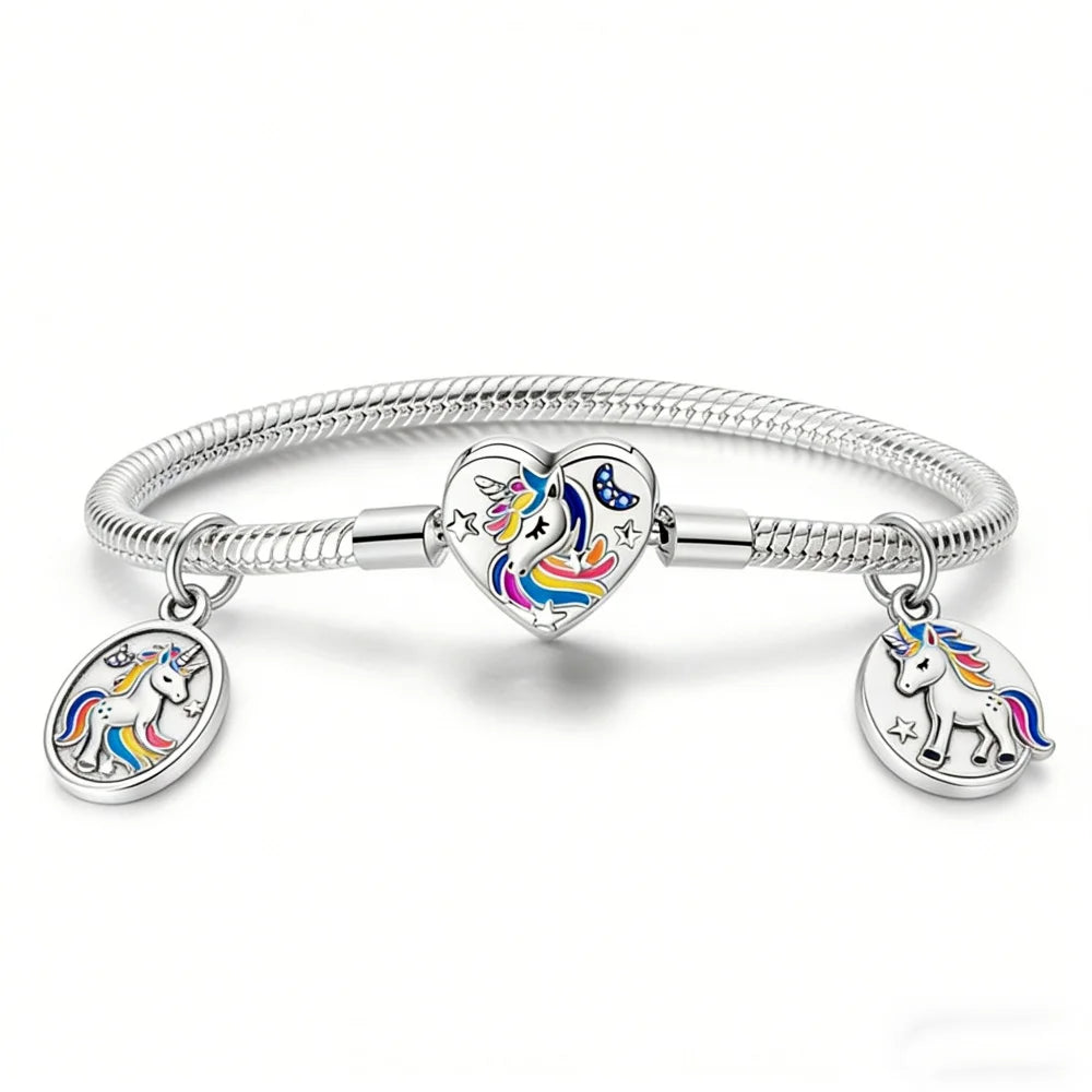 Capture the magic of the night sky with the Fmrose bracelet, a refined piece of jewelry that combines the prestige of solid silver with equestrian magic. This bracelet is distinguished by its exclusive “Starry Sky Unicorn” charms, representing a majestic unicorn under a starry vault, for a silhouette that is both modern and dreamlike. Designed for women looking for a distinctive accessory, this jewel is the ideal gift to celebrate an equestrian passion with an elegance worthy of the greatest fashion shows.