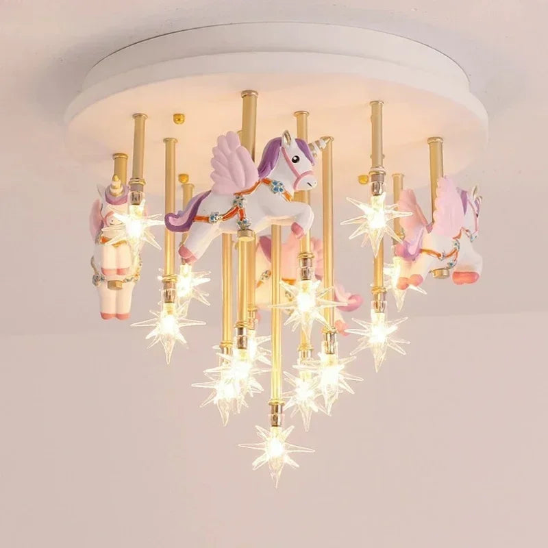 • Design enchanteur : suspension ornée de figurines de licornes en résine et de lampes en forme d'étoiles.