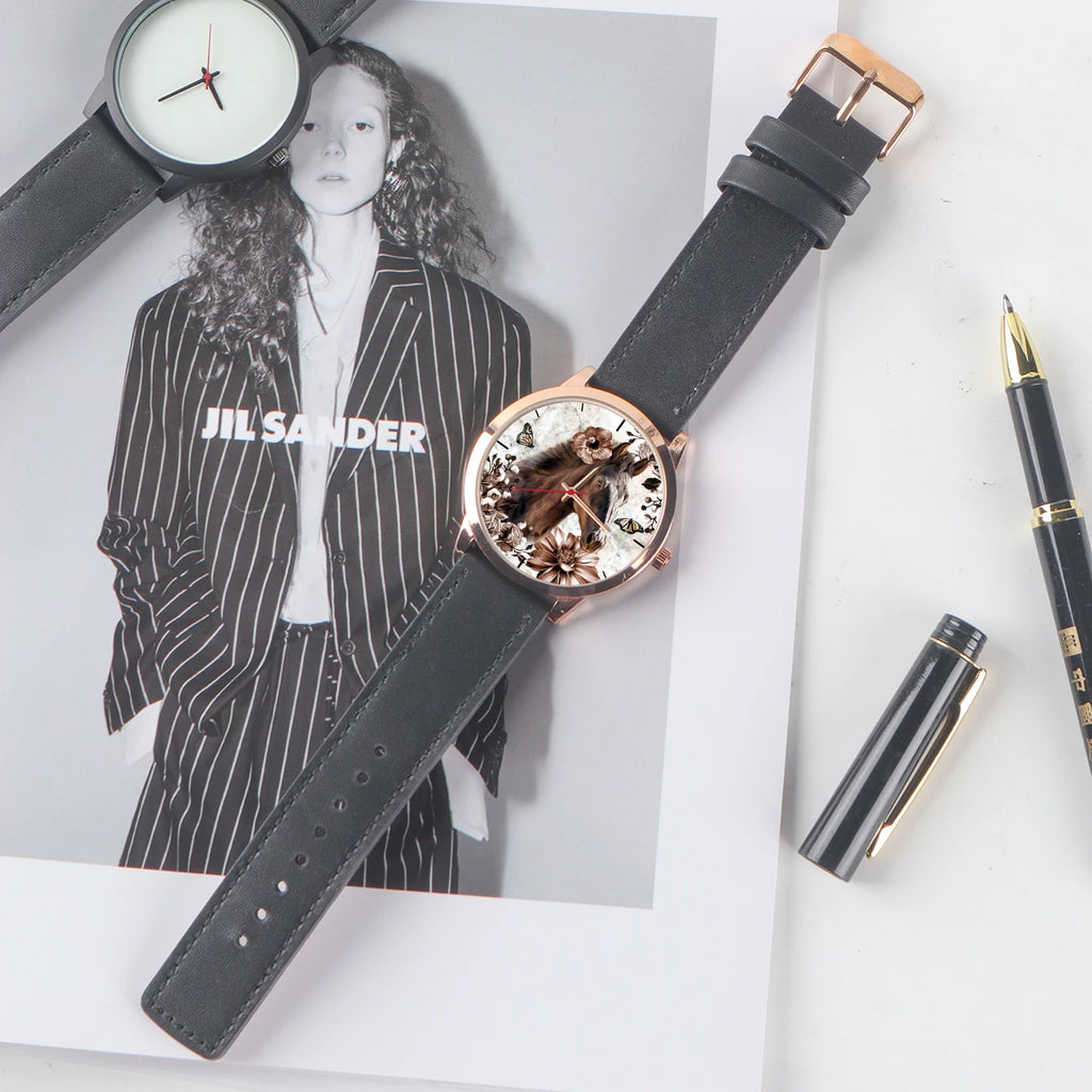 Affirmez votre élégance naturelle avec cette montre ZEV LIU de la collection "Terre des Loups", un garde-temps qui fusionne la force brute de l'étalon et la délicatesse d'un jardin en fleurs. Arborant un cadran magnifié par une impression UV haute définition, cette montre présente le portrait d'un cheval brun entouré de fleurs automnales et de papillons, créant une esthétique Fashion & Casual unique. Avec son bracelet en maille milanaise noire et ses finitions soignées, c'est le cadeau prestigieux idéal pour la fête des pères ou toute occasion spéciale, offrant un style sophistiqué qui ne passe jamais inaperçu.