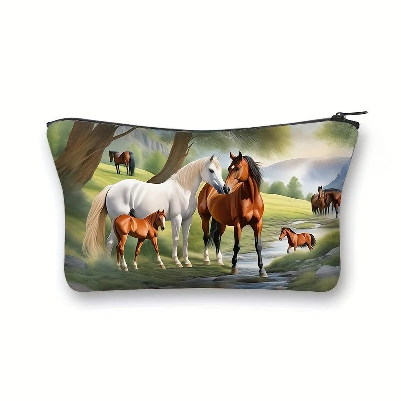 Apportez une touche de grâce et de noblesse à votre routine beauté avec cette trousse cosmétique "Terre des Loups". Fabriquée en polyester de haute qualité, elle présente des impressions réalistes et artistiques de chevaux capturés dans des paysages naturels somptueux. Que vous soyez en déplacement ou que vous organisiez votre coiffeuse, ce pochon polyvalent est l'accessoire indispensable pour ranger vos essentiels de maquillage, vos pinceaux ou même votre monnaie avec un style résolument élégant. Sa conception souple et légère en fait un compagnon de voyage pratique qui se glisse facilement dans n'importe quel sac.